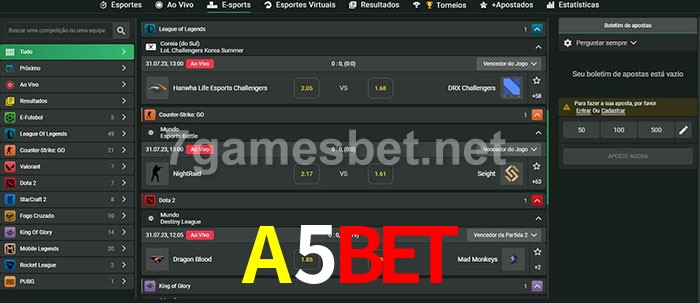 A aposta A5Bet oferece aos jogadores a experiência mais conveniente de apostas em eSports!